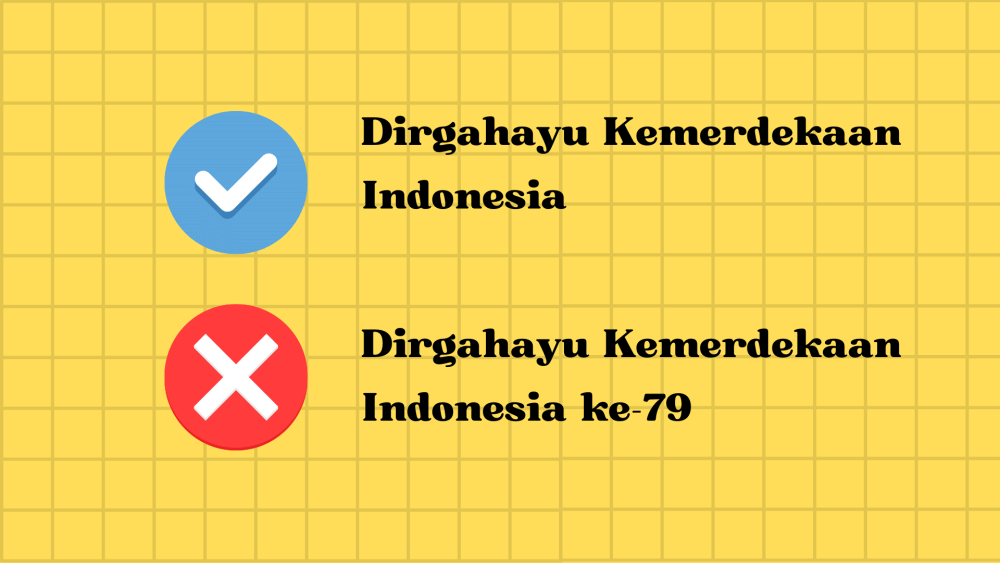 Penting untuk dipahami bahwa penulisan ucapan selamat berupa ‘Dirgahayu Kemerdekaan Kita ke-79’ tidak tepat. Bentuk ucapan selamat yang tepat ialah ‘Dirgahayu Kemerdekaan Indonesia’.