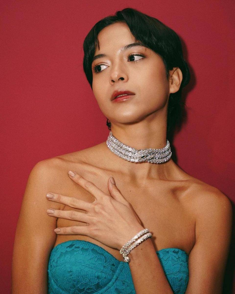 7. Tampil lebih dewasa di acara formal dengan potongan Pixie Haircut dengan poni yang menyamping