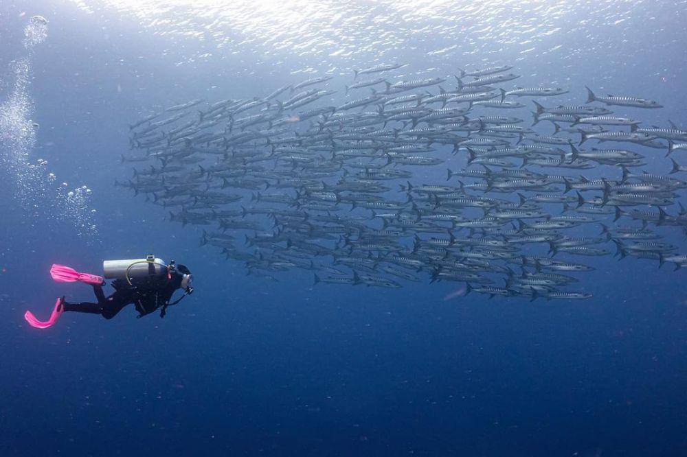 7. Berenang bersama gerombolan ikan Barakuda juga jadi salah satu momen yang sangat memanjakan mata!