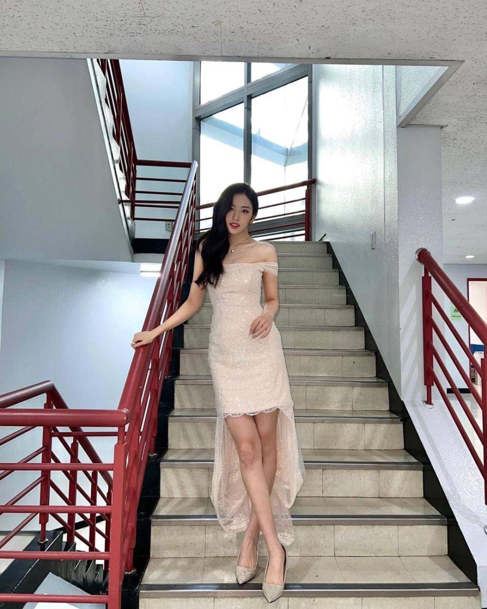 5. Ingin yang berkesan lebih luxury? Tinggal padukan dress v-neck hitam dan aksesoris gold minimalis seperti Yujin di bawah ini!