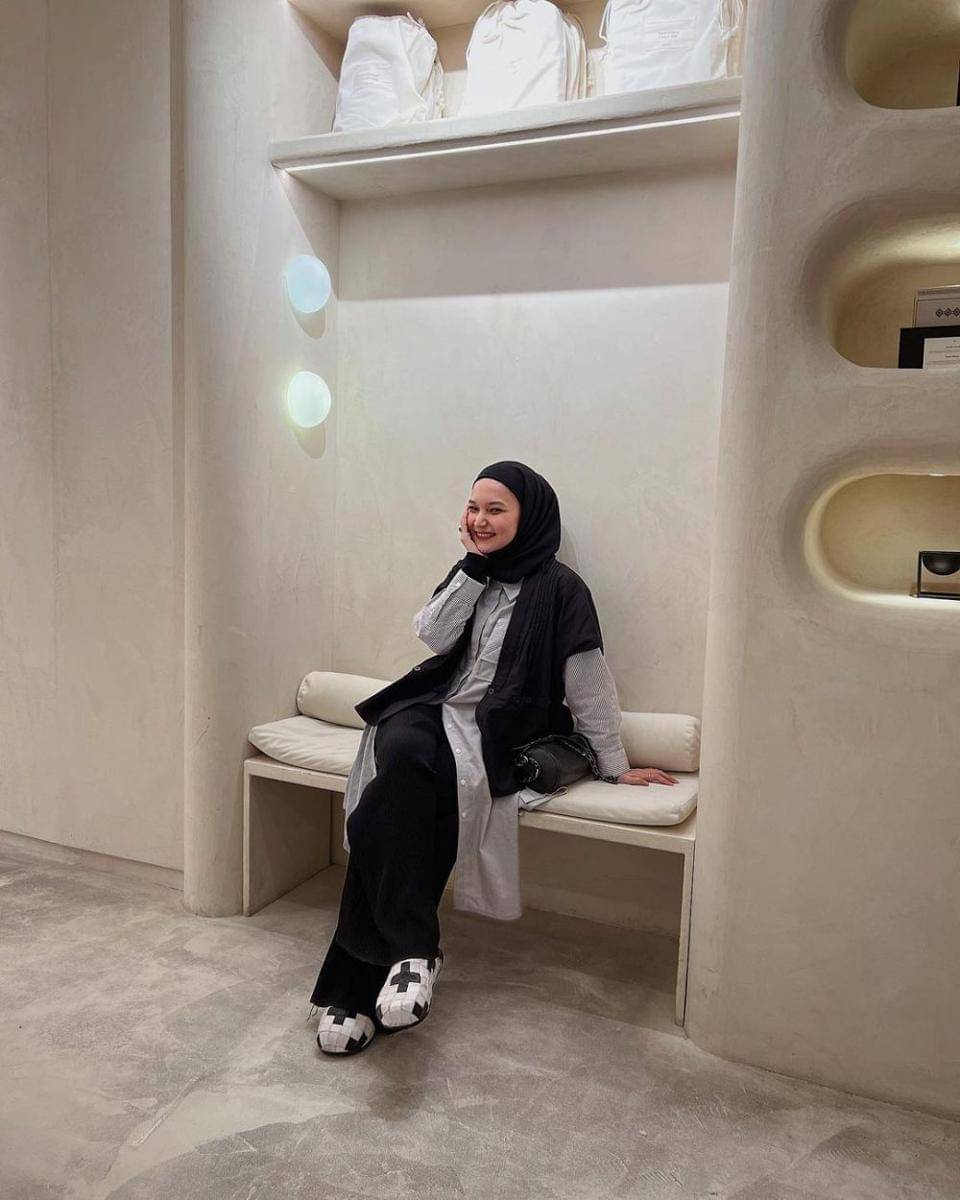 9 Inspirasi OOTD Hijab Hitam Edgy Style ala Soraya Ulfa, Bold & Unique